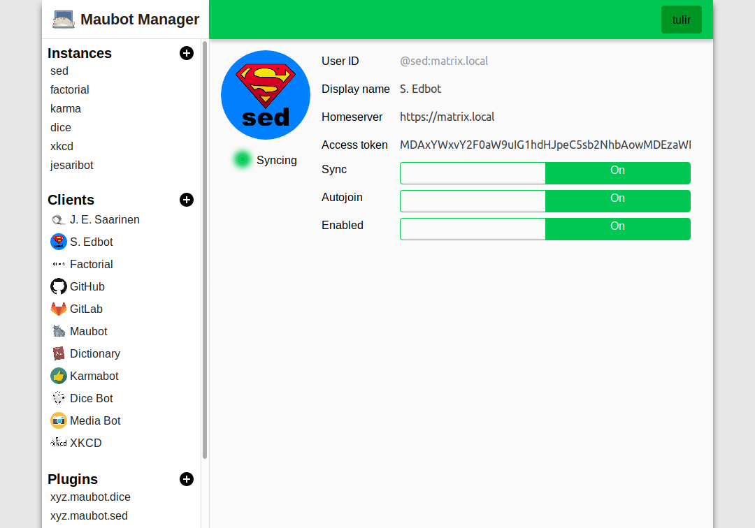 tulir has been making big progress on his maubot management UI: