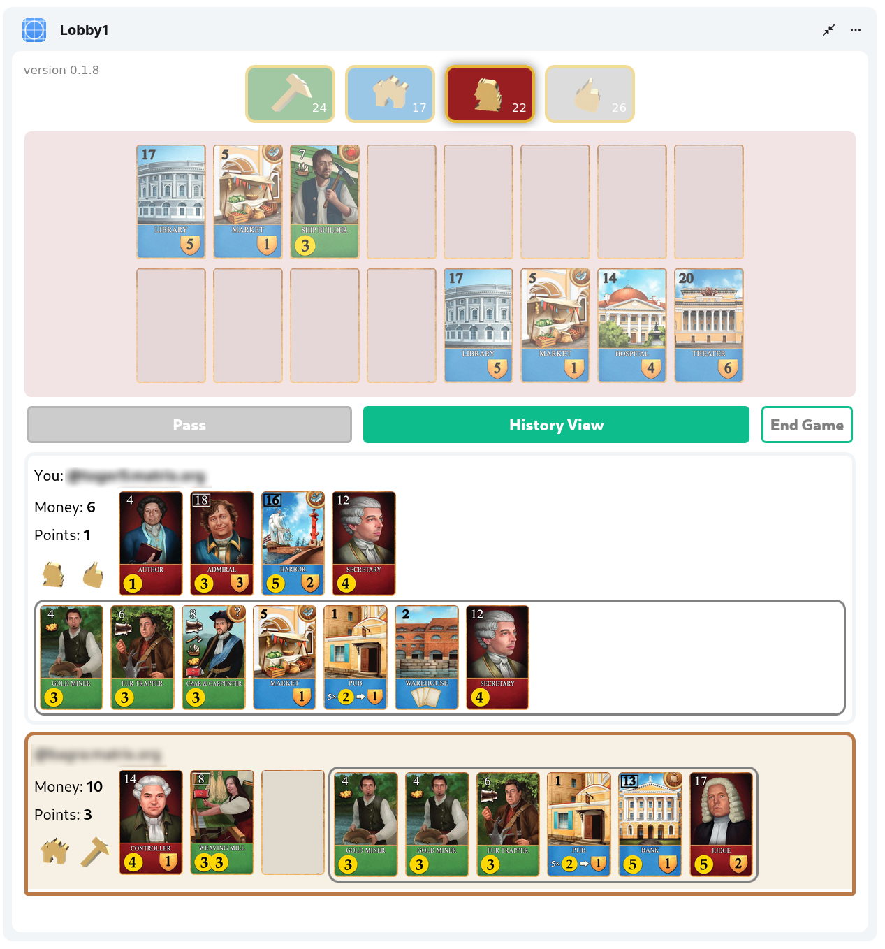 Last but not least the game Saint Petersburg is really fun. It takes a couple of minutes to grasp the rules but it is one of those games where there are so many things that can be considered with simple rules that it becomes more and more exciting with each round. So I really invite you to check out the rules and give it a try. Its best to start in the Git Repo or join the this room: #st-petersburg-auth:matrix.org