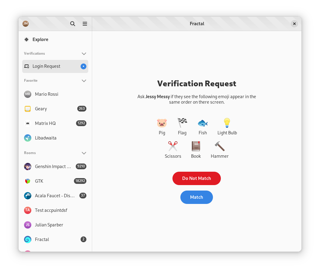 Fractal-Next now supports verification of other users by scanning their QR code, or via emoji